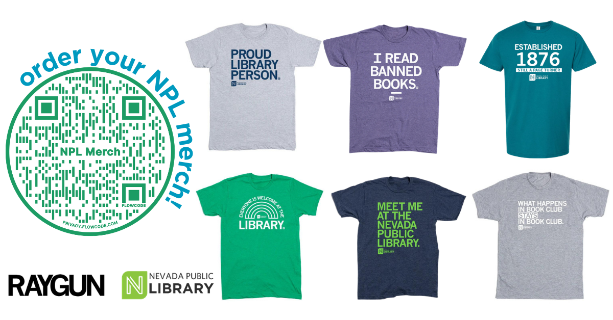 Support the Nevada Public Library by purchasing locally-printed, NPL merch for all the library lovers you know! The best part is, 40% of the profits will go to directly support NPL programs and our yearbook digitization efforts. Click here to order your NPL gear.
